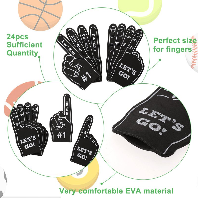 - 【Quality Material】: The No. 1 foam fingers are made of high-quality EVA foam, double-sided design, printed with different exciting text on both sides, not easy to fade or deform, easy to put on and take off, and can be used for a long time.
