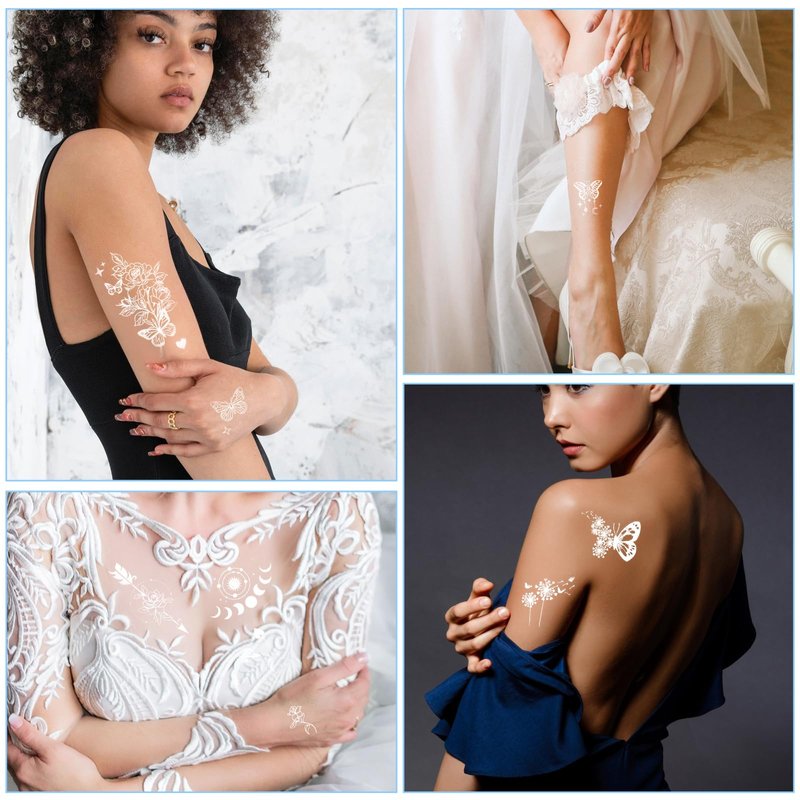 - 【Easy To Apply】Fear for the pain? No worry anymore. Our fashionable white butterfly temporary tattoos are easy to use. First, Wipe your skin clean, Then stick the pattern face down on the skin then cover it with a wet sponge for 20-30 seconds, and uncover the back paper, you will get a perfect butterfly tattoo! The removal is also very simple, just wipe it off with baby oil or cleansing oil, rubbing alcohol, or olive oil.