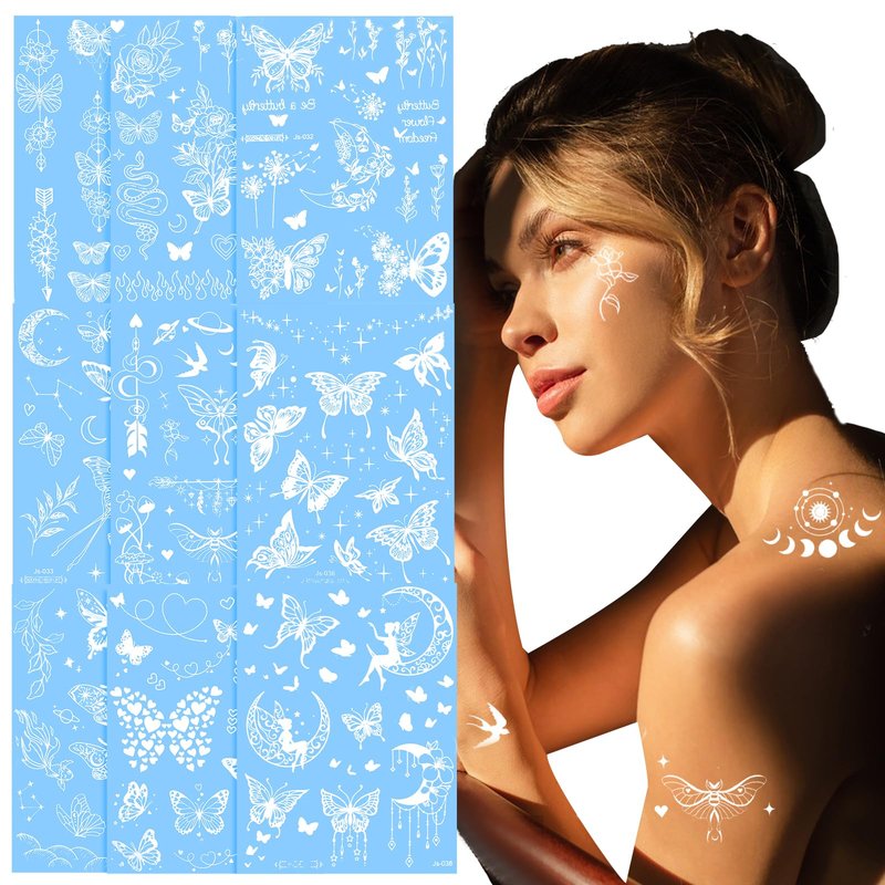 - 【Butterfly Tattoos Design】The fake butterfly temporary tattoos have 9 sheets of different butterfly wings flower patterns. A simple and fresh style, you can use these tattoos for your face eyes, and neck and wear them anywhere on your body, Be unique to the party and you can share these tattoos with your friends. Show your personality, Create the popular butterfly makeup on the Internet.