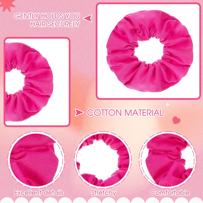 Tigeen 24 Pcs Scrunchies Bulk Breast Cancer Awareness Soft Hair Scrunchies Cotton Solid Colors Thick Elastic Bands Ponytail Ties Holder for Women Girls Kids Hair Accessories(Hot Pink)