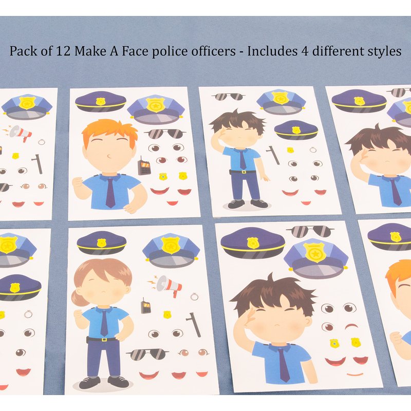 - 12 make-a-face police officer stickers and 144 temporary tattoos that kids will absolutely love!