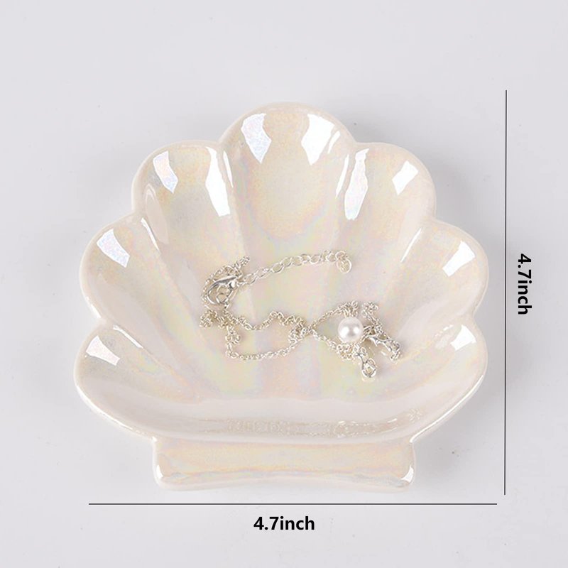 - 🐚[Premium Quality]: This ceramic shell jewelry tray is made of high quality ceramic. This ring dish will not turn yellow and the bottom also won't scratch your furniture.