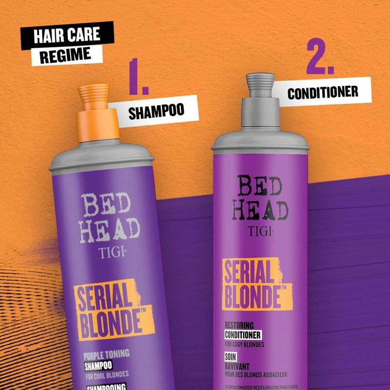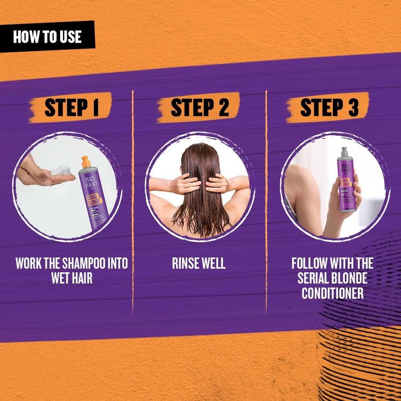 • CARE FOR BLONDE HAIR: Are you a Serial Blonde? Bed Head's Purple Toning Serial Blonde Shampoo helps to revive and care for chemically treated hair.