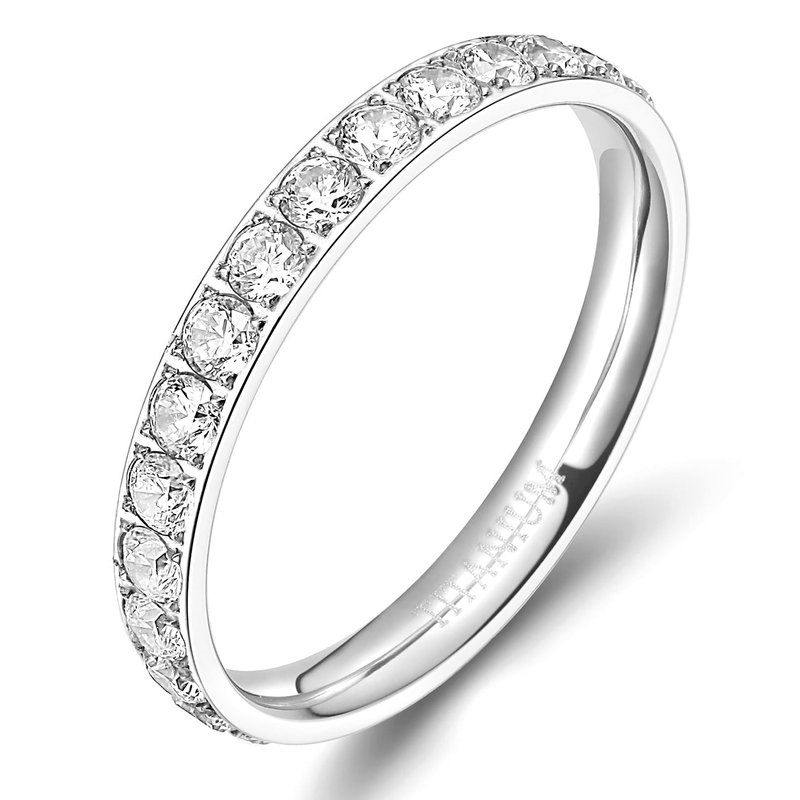 TIGRADE 3mm Women Titanium Engagement Ring Cubic Zirconia Eternity Wedding Band Size 3 to 13.5(Silver, 7)
