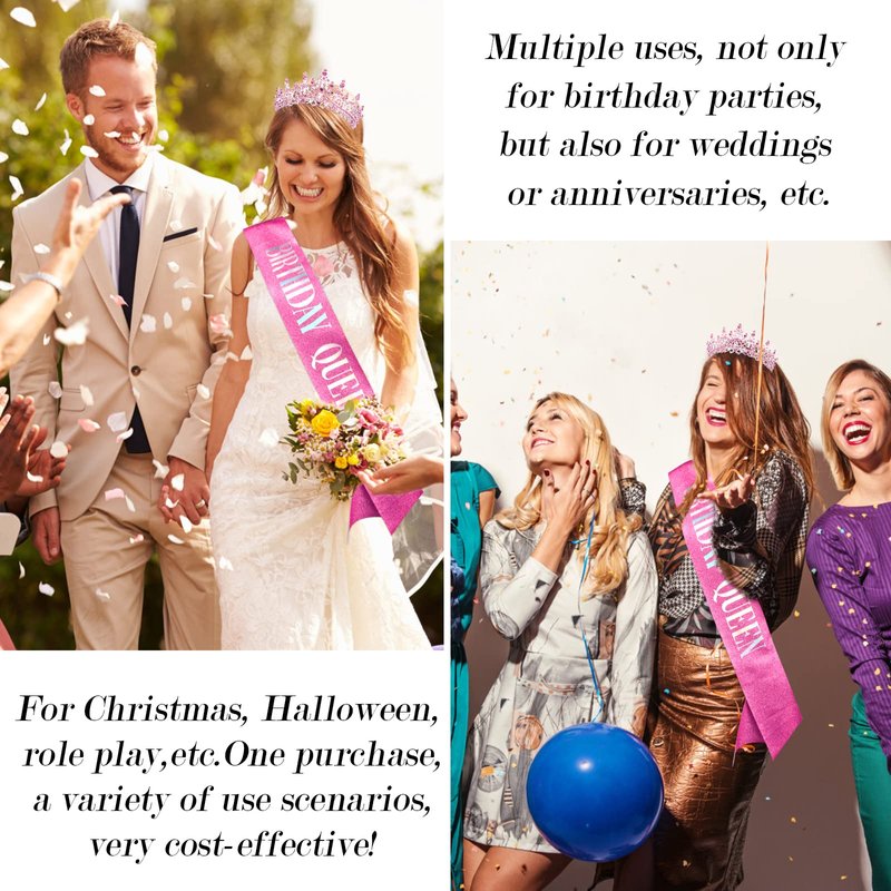 TIHEBAX Birthday Tiara and Sash for Women Girls Birthday Queen Series Graceful Birthday Crown and Sash for Party Gift Halloween Cosplay Premium Rhinestone Headbands for Princess Dress Up (pink)