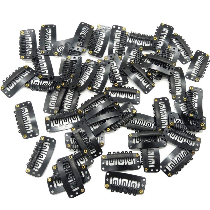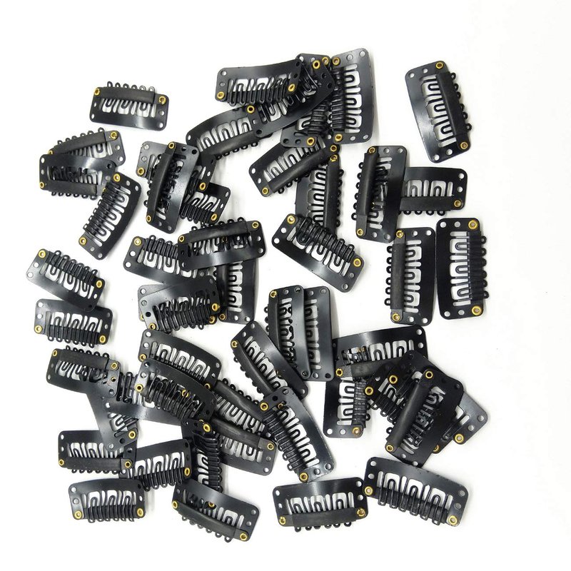 TIHOOD 50PCS Snap Clips for Hair Extensions Weaves U-shape Metallic Wig Clips With Silicon Rubber Small Size Black