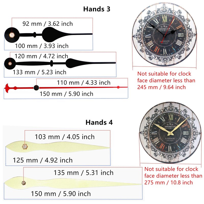 Total minute hand length: approx. 150mm (5.9 inch)