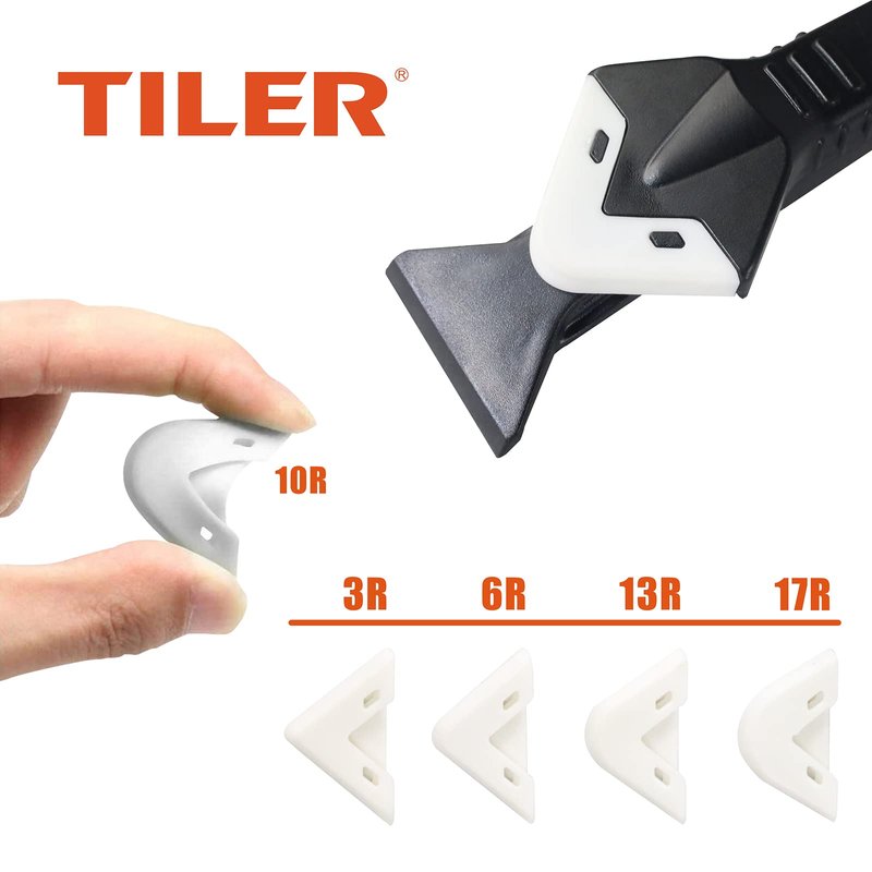 - 👍5-IN-1 SILICONE CAULKING TOOL: TILER prepares you for everything in need. The box includes 1 xflat angle scraper, 1 xinternal angle scraper, 1x silicone smoother, 1x glass cement opener, 1x nozzle needle, and 5x replaceable pads (3R,6R,10R,13R,17R). Tiler lets you caulk like a pro in seconds!