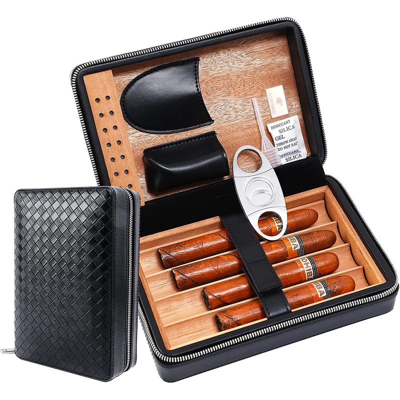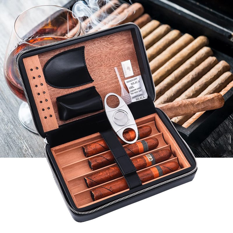 📦 Package contents: cigar case, cigar cutter, humidifier. gift box packaging, storage jacke