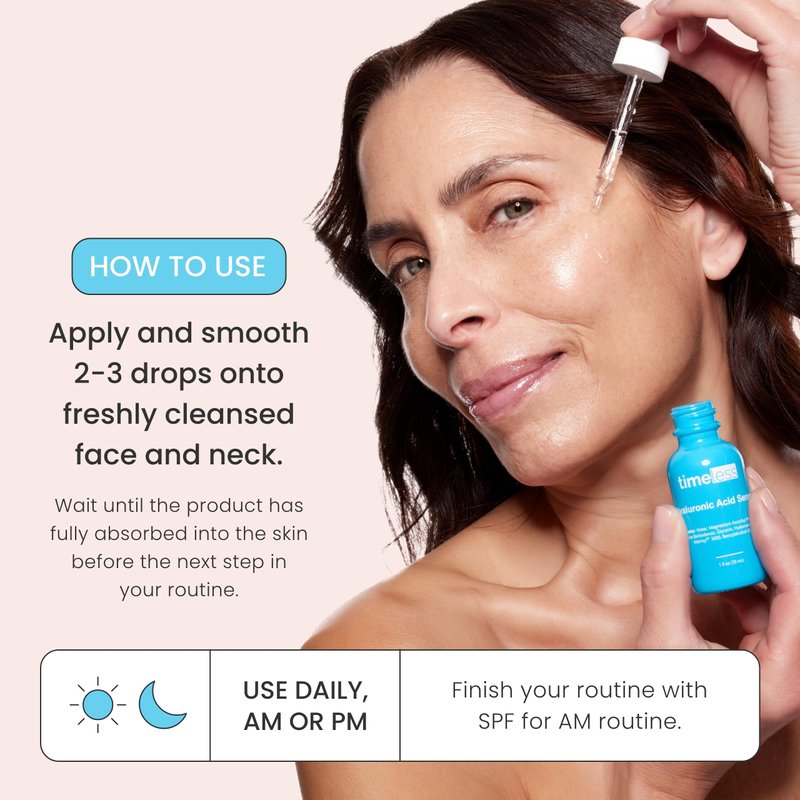 - Hyaluronic Acid Skin Care Serum: Our Hyaluronic Acid serum is formulated to support healthy hydration levels in the skin to help replenish skin volume