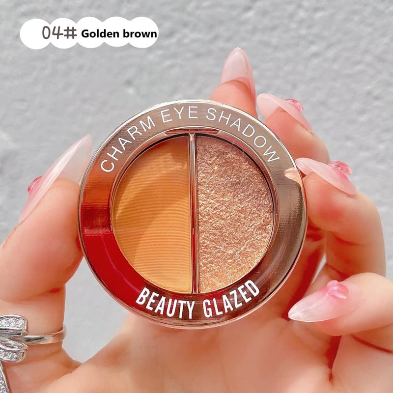 Timipoo Double color eye shadow, high pigment eye makeup palette, matte shimmer metal eye shadow powder, waterproof and durable color eye shadow (04#Golden brown)