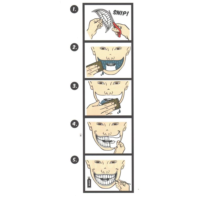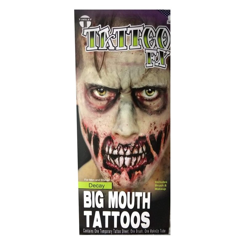 - Includes: One Big Mouth Temp Tattoo, Brush and tube of black face paint