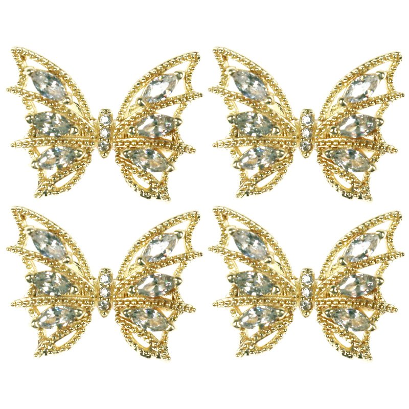 Tinsow 4 Pcs Nail Diamond Metal Nail Art Butterfly Jewelry Crystal Strass Moving Wings Butterfly Nail Diamond Stones Wedding Charms Accessories (Gold)