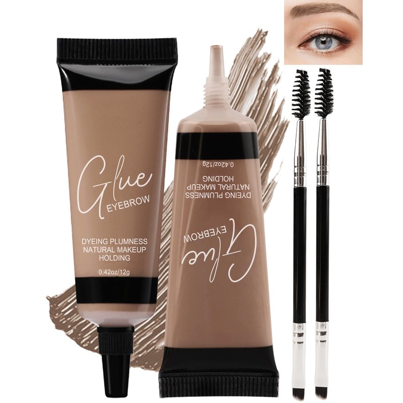 Tinted Eyebrow Gel Kit-2PCS Brown Thickening Brow gel para cejas,Brow Fillers,Fast Definitio Brow Glue,Natural Long Lasting Waterproof Eyebrow Makeup Gift for Women with 2 Eyebrow Brushes-Set 03