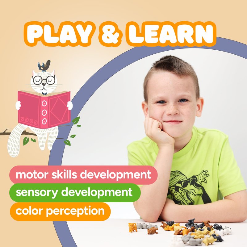 - Little plastic toy animals are great for kids - this is pure cuteness! That heartwarming toys is mini dog figurines and small cat figures made of safe plastic.