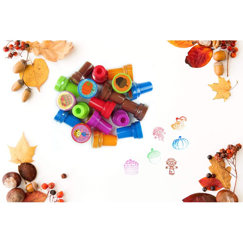 Tiny Mills 24 Pcs Fall Stampers for Kids Assorted Stamps for Kids Self Ink Stamps (12 Different Designs) Fall Party, Thanksgiving Halloween Party Favors, Goody Bag Filler Treats, Classroom Rewards