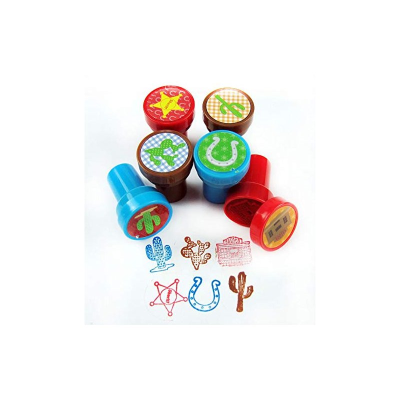 Tiny Mills 24 Pcs Western Cowboy Cowgirl Stampers for Kids Western Party Favors Goody Bag Stuffers Pinata Fillers Carnival Classroom Rewards