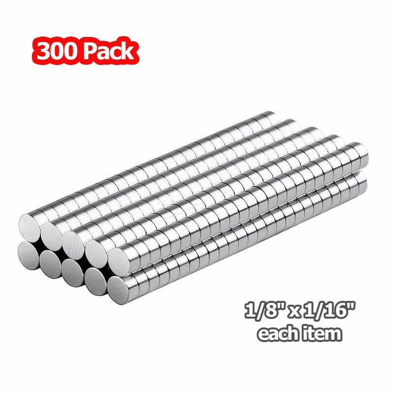 Tiny Round Disc Magnets 1/8x1/16 - Metal Adhesive Sticker Holder Miniature Lifter Wargaming Fastener Small Circular Magnet Discs (300 Pack)