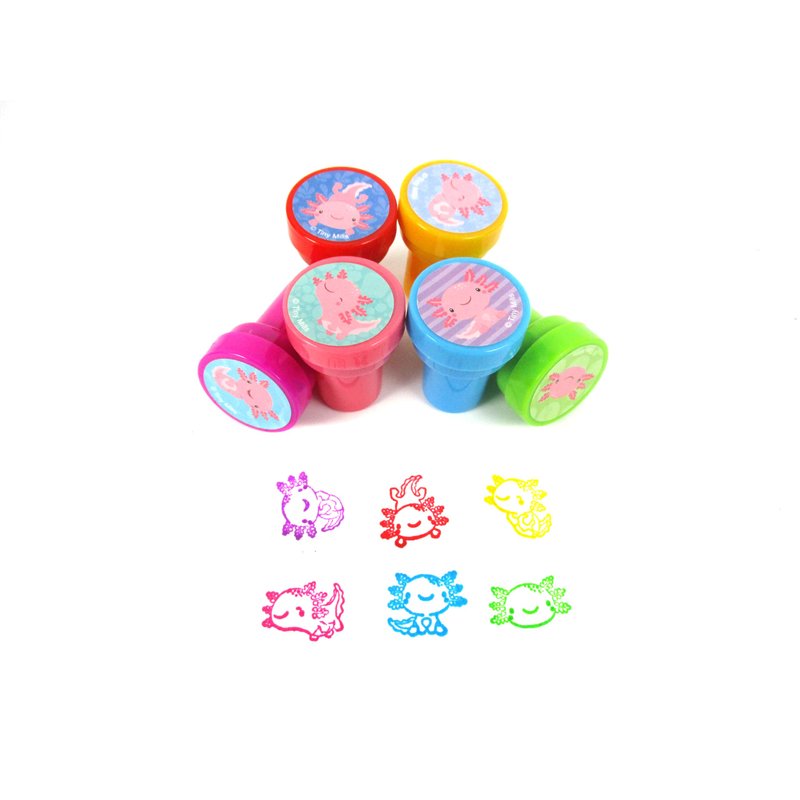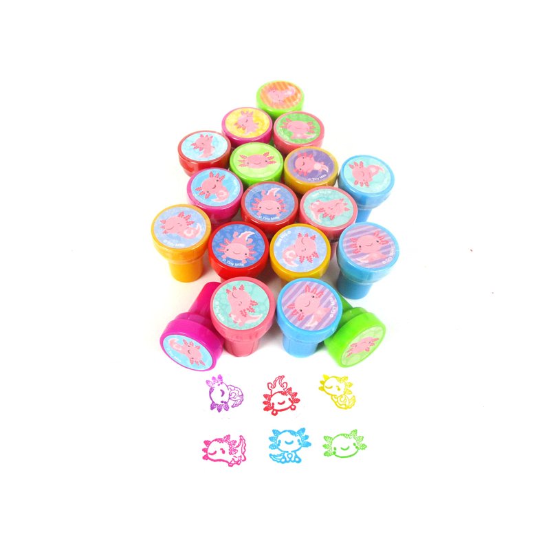 - Fun Stampers: This set includes 24 colorful self-inking stampers featuring adorable axolotl designs, perfect for creative projects.