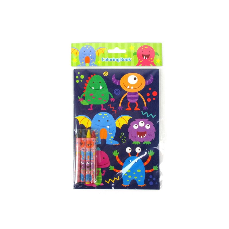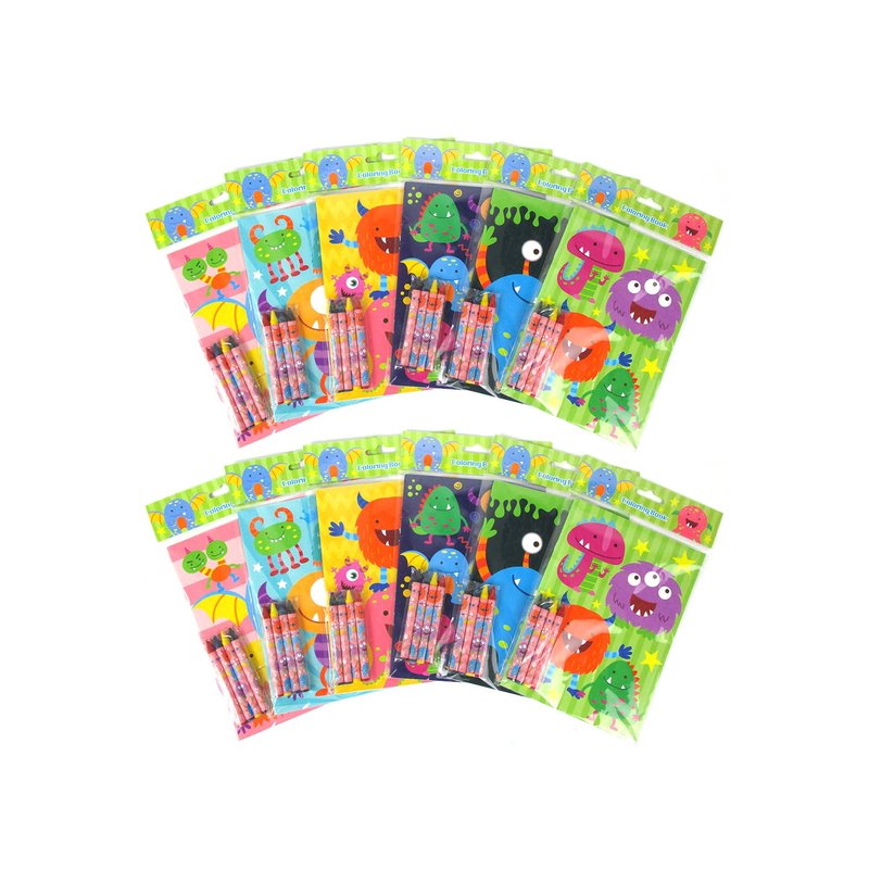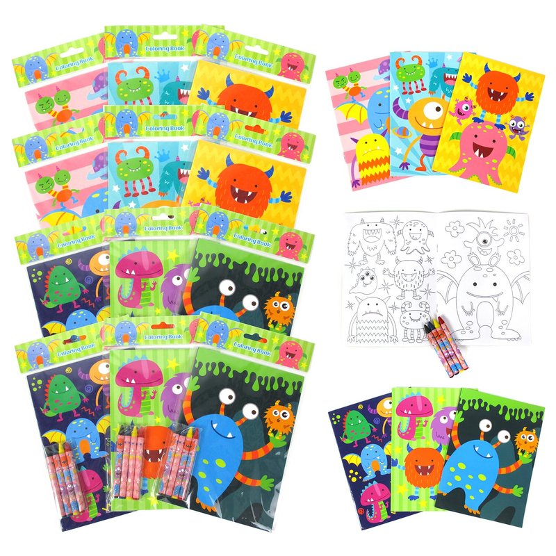 - Set includes 12 coloring books in monster themed designs and 48 crayons!