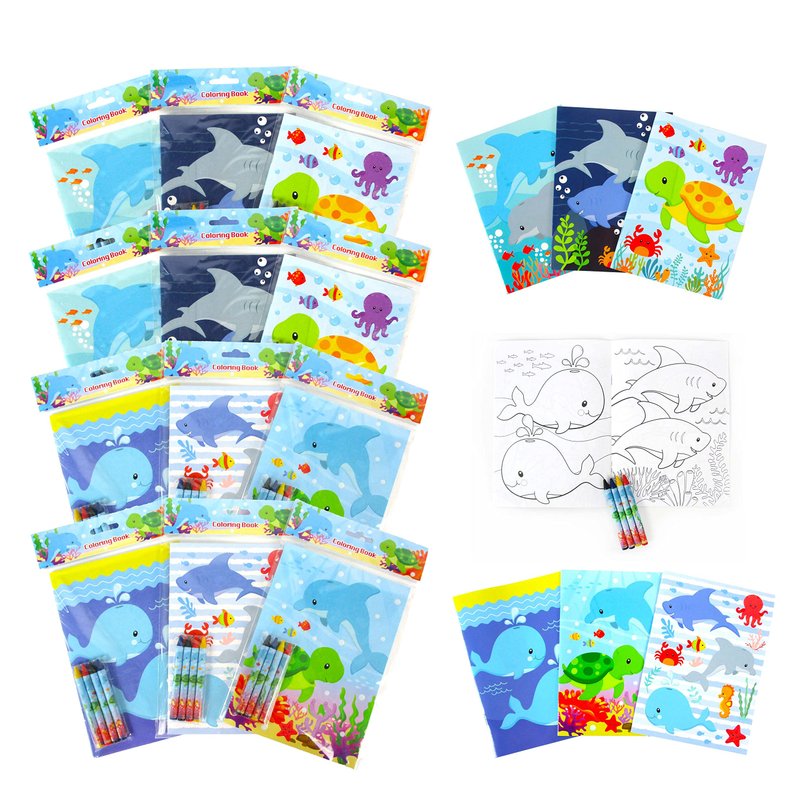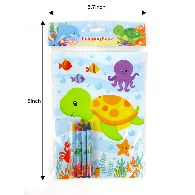 TINYMILLS Sea Turtles Animals Coloring Book Set with 12 Coloring Books and 48 Crayons Ocean Animals Birthday Party Supplies Favor Bag Filler Carnival Prizes Rewards