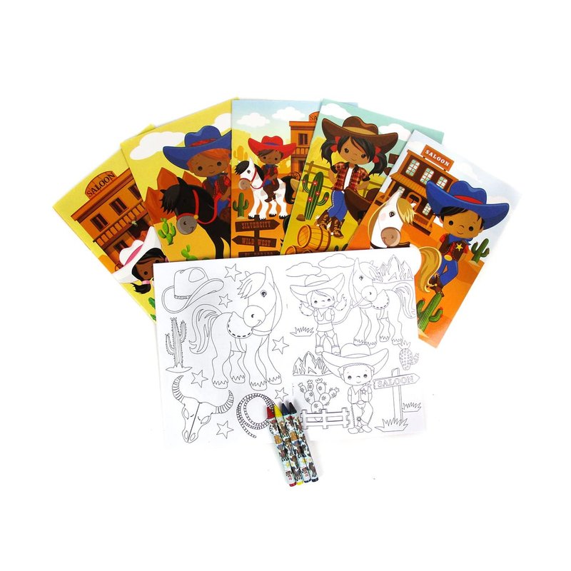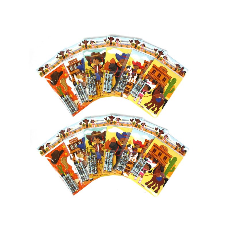 TINYMILLS Western Black Cowboys and Cowgirls Coloring Books for Kids with 12 Coloring Books and 48 Crayons Western Party Favors, Goody Bag Filler