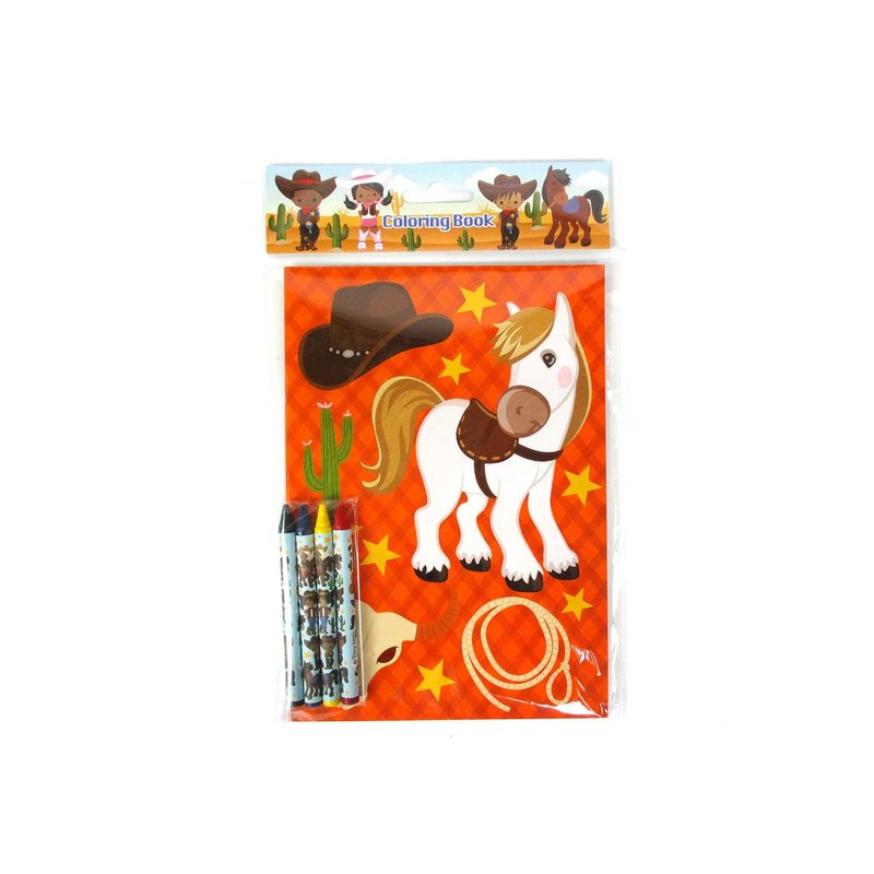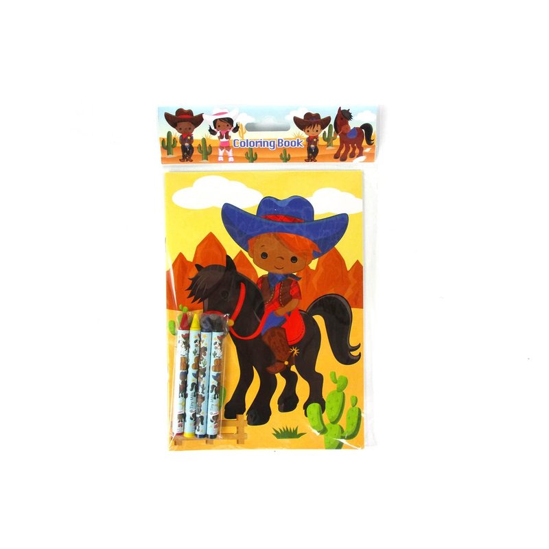 Celebrate a western themed birthday with with these awesome black cowboy and cowgirl coloring book sets! Each coloring book comes with 16 pages and 4 crayons. The coloring books make are compact enough to take on road trips! Combine this with our western black cowboy and cowgirl stampers, and our western black cowboy and cowgirl stackable pencils to make a complete arts and crafts kit! Each booklet measures appx 9 inches tall, 7 inches wide