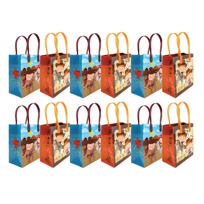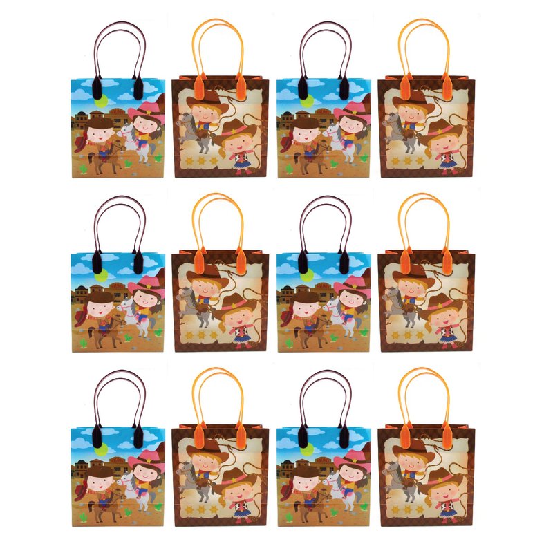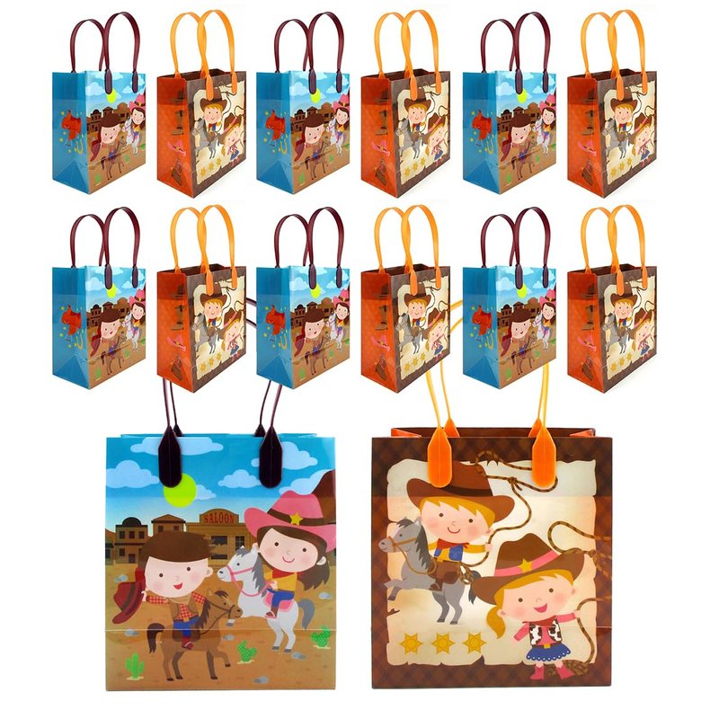 TINYMILLS Western Cowboy Cowgirl Themed Party Favor Bags Treat Bags, 12 Pack