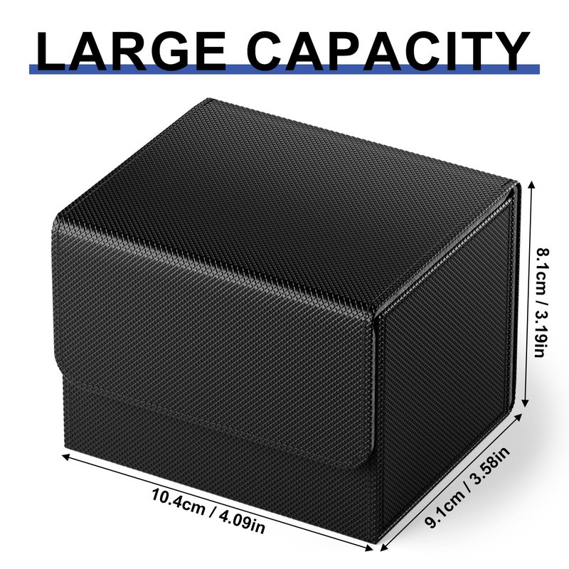 - Large Capacity: The deck holder case measures about 4.13 x 3.54 x 3.15 inches. This card box fit for mtg can easily hold up to 100 single sleeve cards or 80+ double-sleeved collectible cards, which fully meets your storage needs.