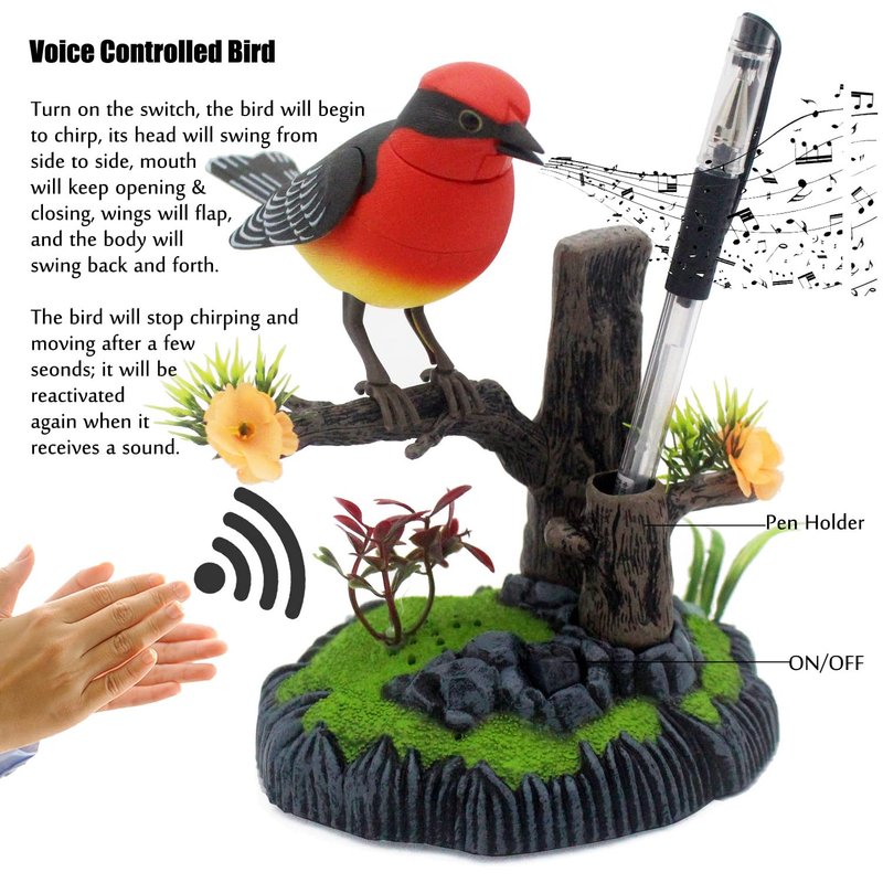 - 【Voice Controlled】 Turn on the switch, and the bird will chirp and move. When it receives a sound, the bird can hear it and be re-activated again! It is so amazing!