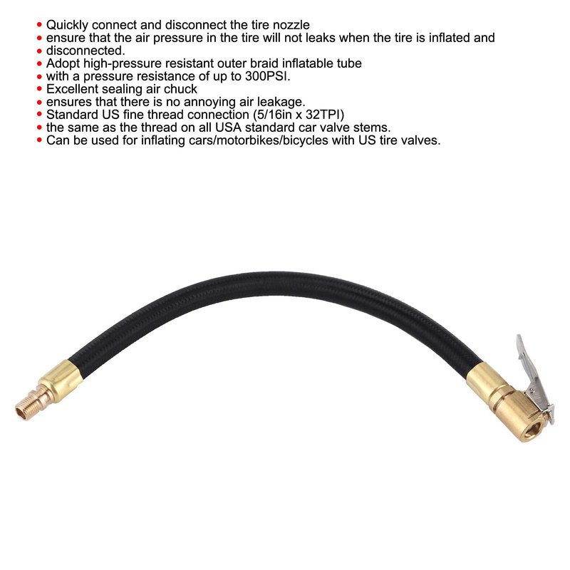 Tire Inflator Extension Tube Tyre Pump Quick Inflation Chuck Adapter Hose Quick-inflation Clip Connector High-pressure Tube Car Motorcycle Maintenance Accessories