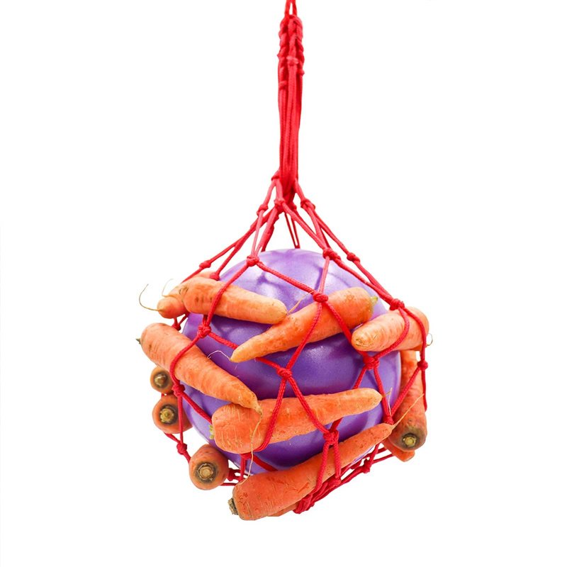- NOTE: Measures 3.93 inch in diameter. Please check the size before you buy it. The ball is deflated for shipping purposes, please blow up the ball enough big and tighten the net bag so that the carrot could be hold snugly.