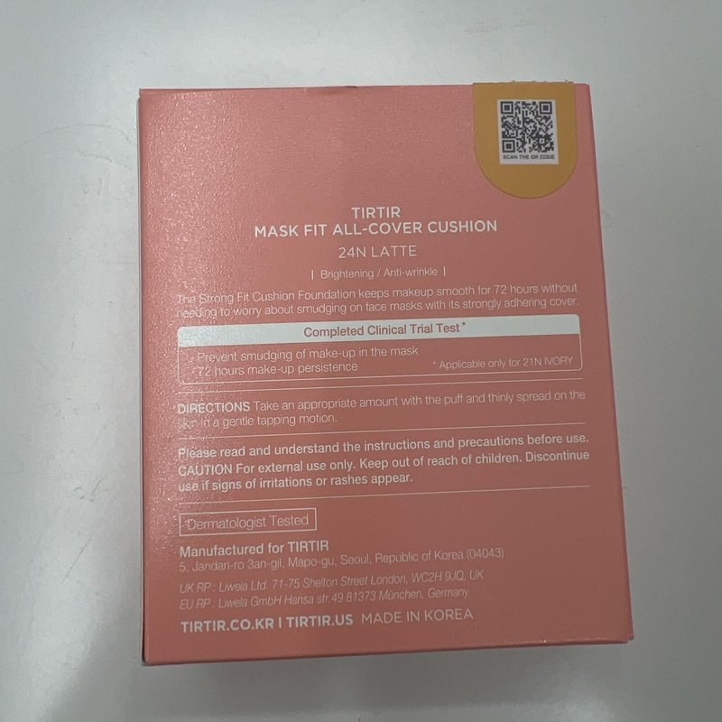 TIRTIR Mask Fit All Cover Pink Cushion Foundation | High coverage, Velvety Matte Finish, Lightweight, Flawless, Corrects Redness, Korean Cushion (#24N Latte, Full Size, 0.63 Fl Oz)