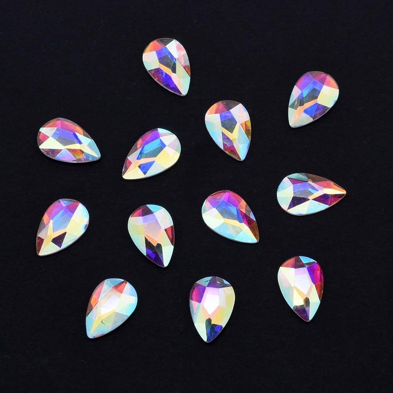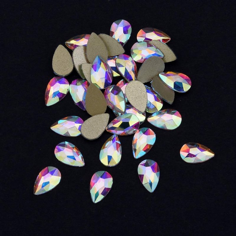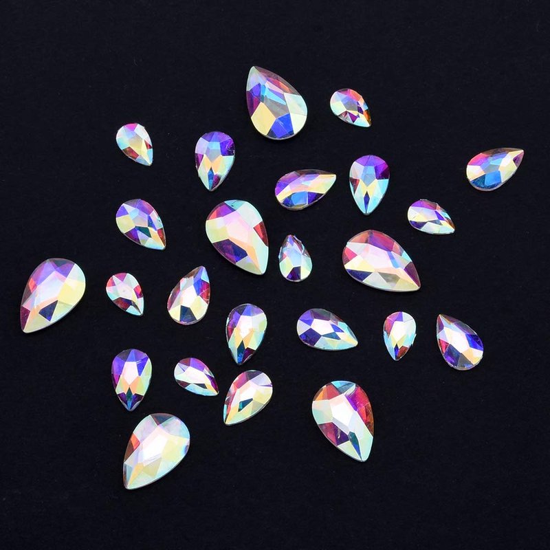 Tisslan 100pcs Crystal AB Foiled Pear Shape Flatback Rhinestone 3 Sizes Mix Nail Art Stones Decorations Jewels for DIY Supplies