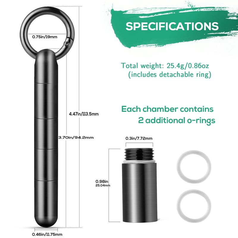 - What You Get- 1 x TISUR black long titanium pill holder keychain +1 x quick release keychain+extra O-seal rubber rings, gift box.