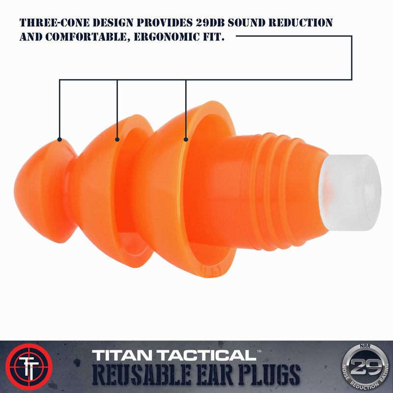 Titan Tactical Eyes + Ear Protection Kit w/ 29NRR Reusable Shooting Ear Plugs + Mil-Spec Clear Range Ballistic Glasses (for Normal + Small Ear Canals)