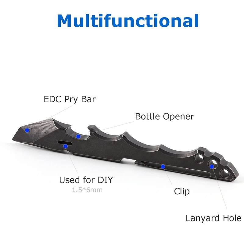 Titanium Pry Bar EDC Multi Tool with Bottle Opener Box Opener Clip Function (Black)