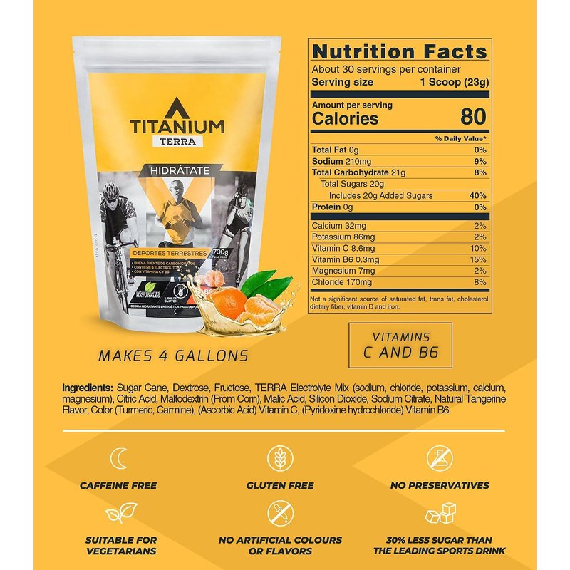 TITANIUM Terra Hydration Drink Mix - Carbohydrate Powder & Electrolyte Mix - Sports Drink Powder for Cycling, Running, Triathlon, Hiking (24.7 oz, 30 Servings) - Endurance Drink - Gluten Free