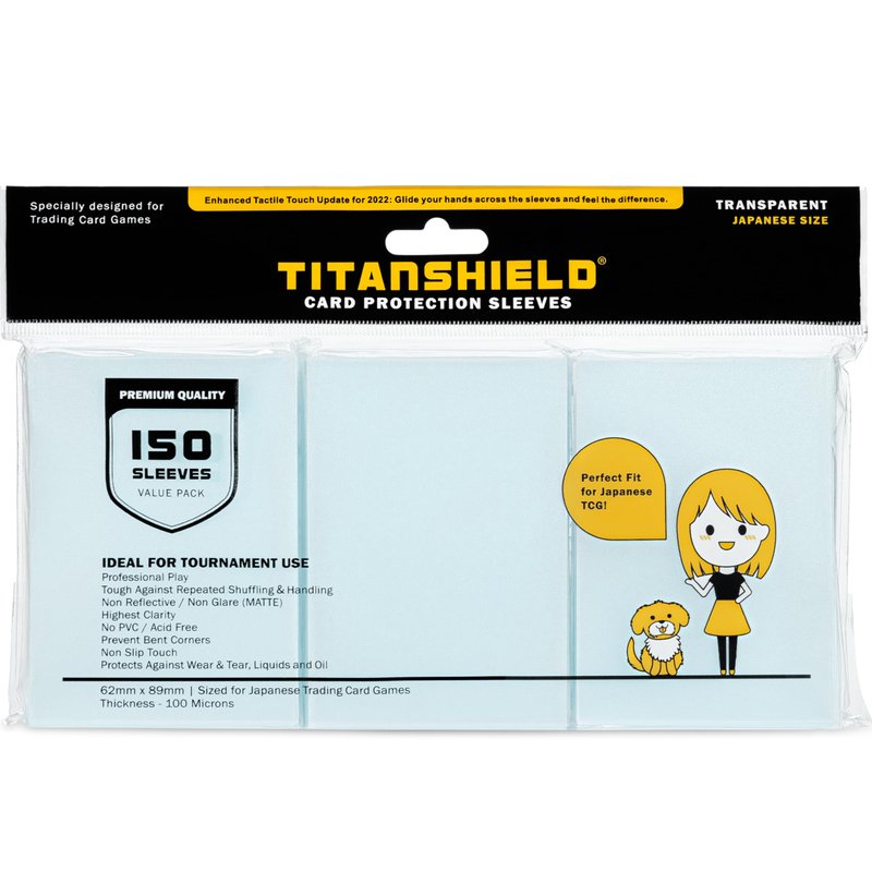 TitanShield (150 Sleeve/Clear) Small Japanese Sized Trading Card Sleeves Deck Protector for Yu-Gi-Oh, Cardfight!! Vanguard & Photocards