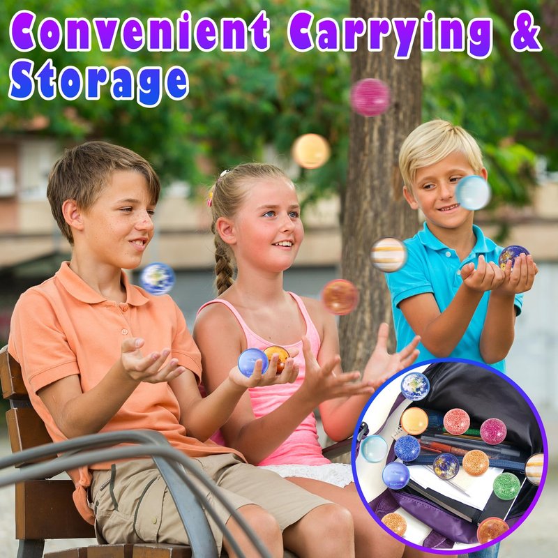 - Planets Bouncing Balls: 24Pcs bouncy balls set contains 8 styles, Including Venus, Mercury, Mars, Jupiter, Saturn, Uranus, Earth and Neptune, each style is 3 pieces, very suitable for universe themed parties and activities.