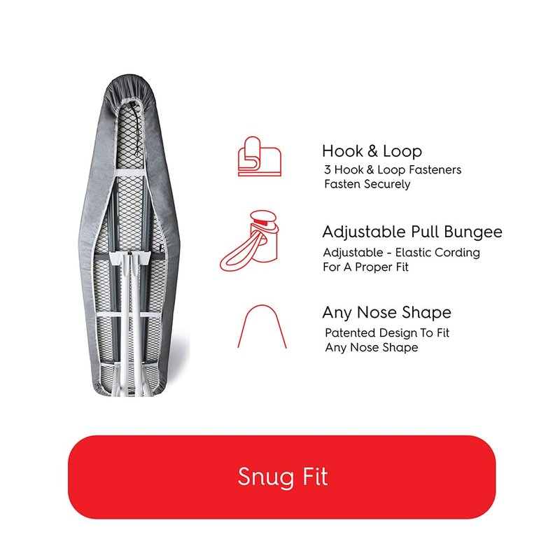 TIVIT Ironing Board Covers 19 x 51 - Made in Italy - Durable Alumitek PRO Heat Reflective Silicone Pads are Scorch & Stain Resistant - Made w/3 Layers of Padding, 3 Fastener Straps & Pull Bungee Cord