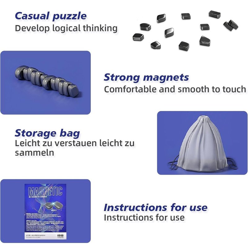 - Magnetic Chess Package: The tabletop magnetic strategy game includes 20 magnets, 1 storage bag, and 1*playing rope. This versatility allows players to choose their preferred playing surface and adds variety to the gameplay