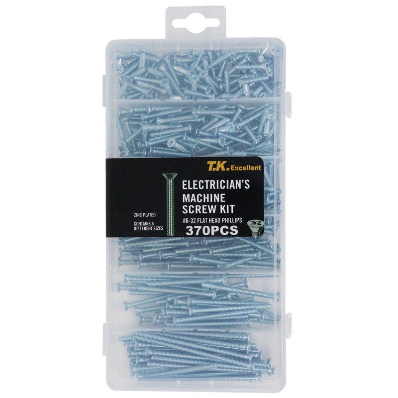 T.K.Excellent Flat Head Phillips #6-32 Electrician's Machine Screw Kit,370 Pcs Assorted Screws, Wall Plate Screws, Outlet Screws