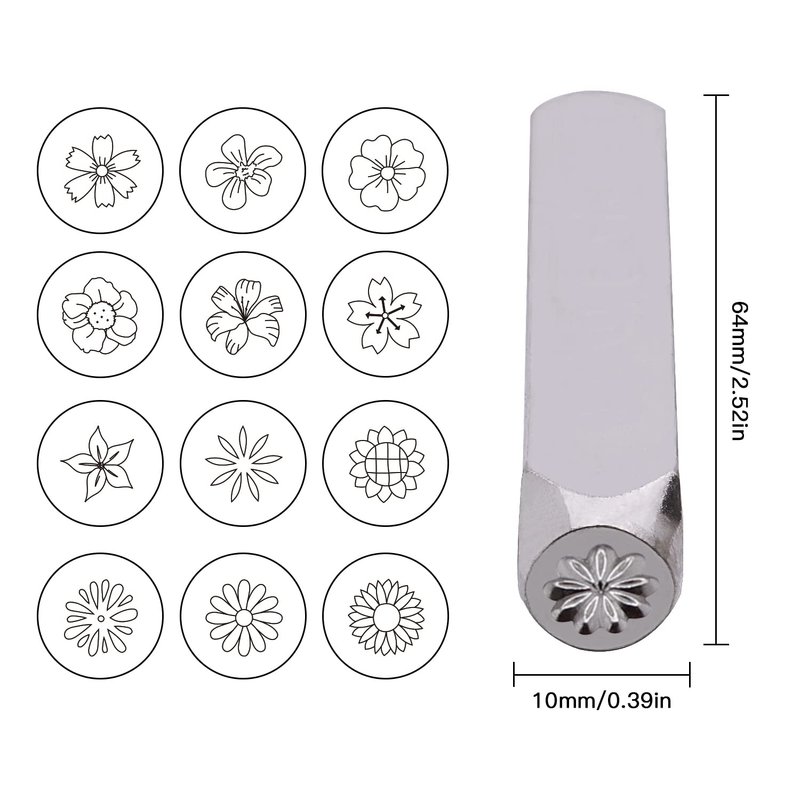 Tlimus 12pcs Flower Theme Metal Stamps, 6MM (1/4”) Metal Stamping Tools DIY Arts and Crafts Supplies Stamping Accessories, Leather & Wood Stamps