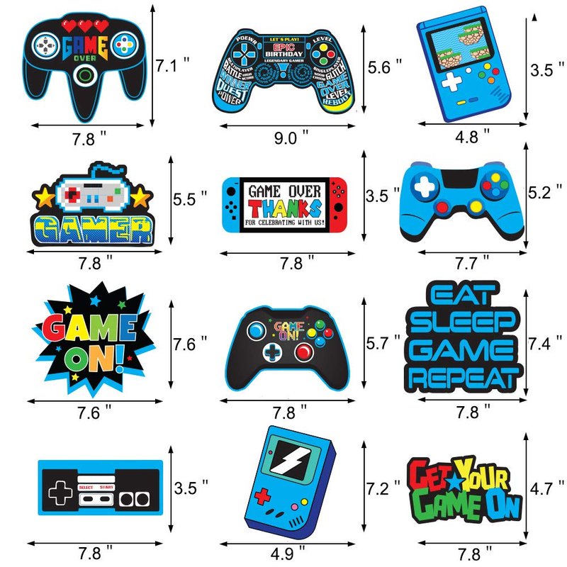 - Gamer Party Decorations for Boys Size:Each swirl can extend to approx 28"-36"long. These video game cards have been assembled, you can directly hang it anywhere you like with the hook on the top.