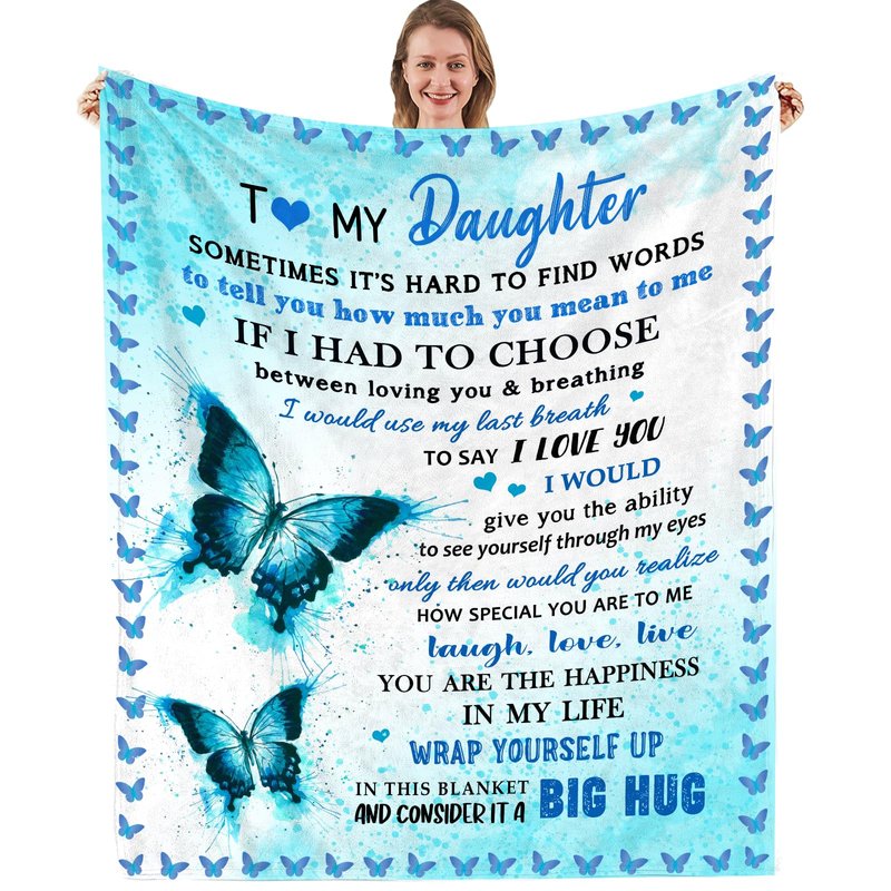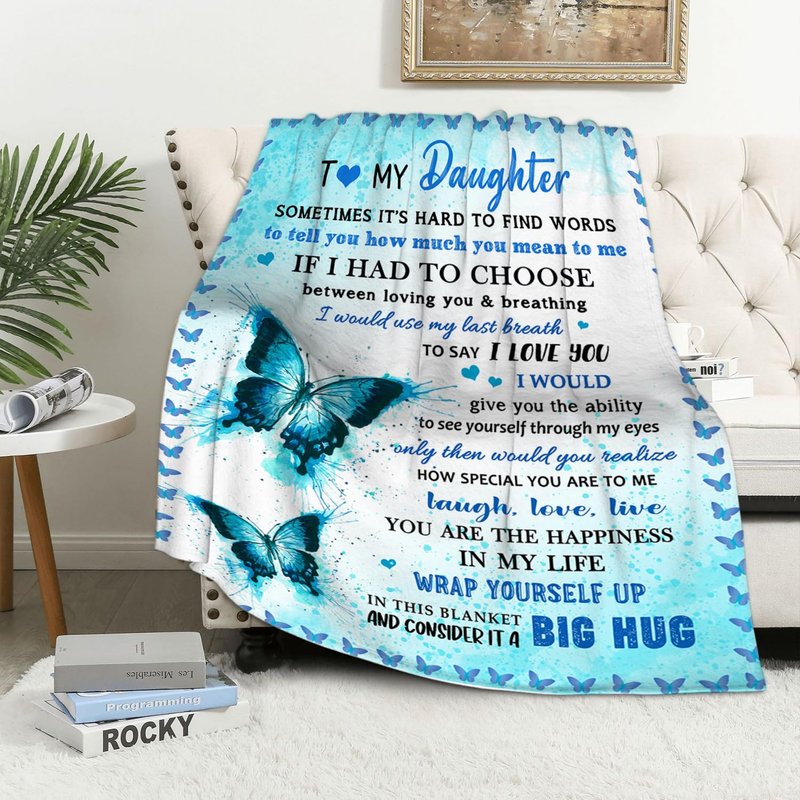 - [Meaningful Daughter Blanket] Let your daughter know she is cherished with our daughter gift blanket. Featuring meaningful words printed on the blanket, it serves as a heartfelt reminder of the special bond between a Mother/Dad and Daughter. Whether it's her birthday or any occasion, this blanket will truly make her feel loved.
