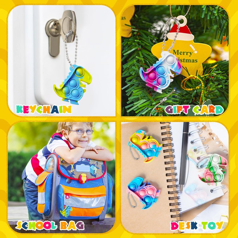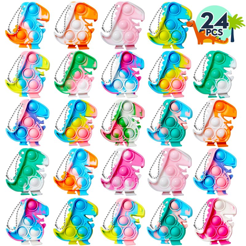 TOANWOD 24 PCS Dinosaur Party Favors for Kids: Dino Pop Keychain Fidget Toys Classroom Prizes Gifts for Students - Goodie Bag Stuffers Treasure Box Stocking Stuffers - Dinosaur Birthday Party Supplies