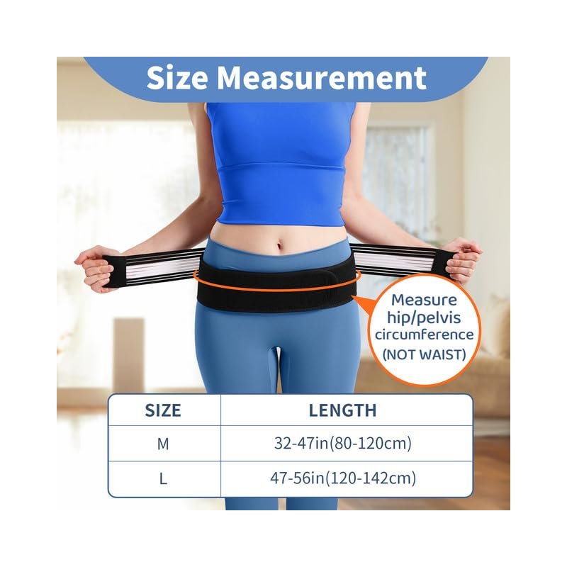 - [Adjustable Size] - SI belt for women provide 2 sizes,Size M length 43in(Before Elasticity Extend):fits hip circumference of 22 - 63in;Size L length 55in(Before Elasticity Extend):fits hip circumference of 28 - 74in.sciatica belt hip braces for hip pain women designed elastic strap to adjust the tightness and compression as your preference.pull 2 sides elastic tension straps to get a tighter or looser fit.