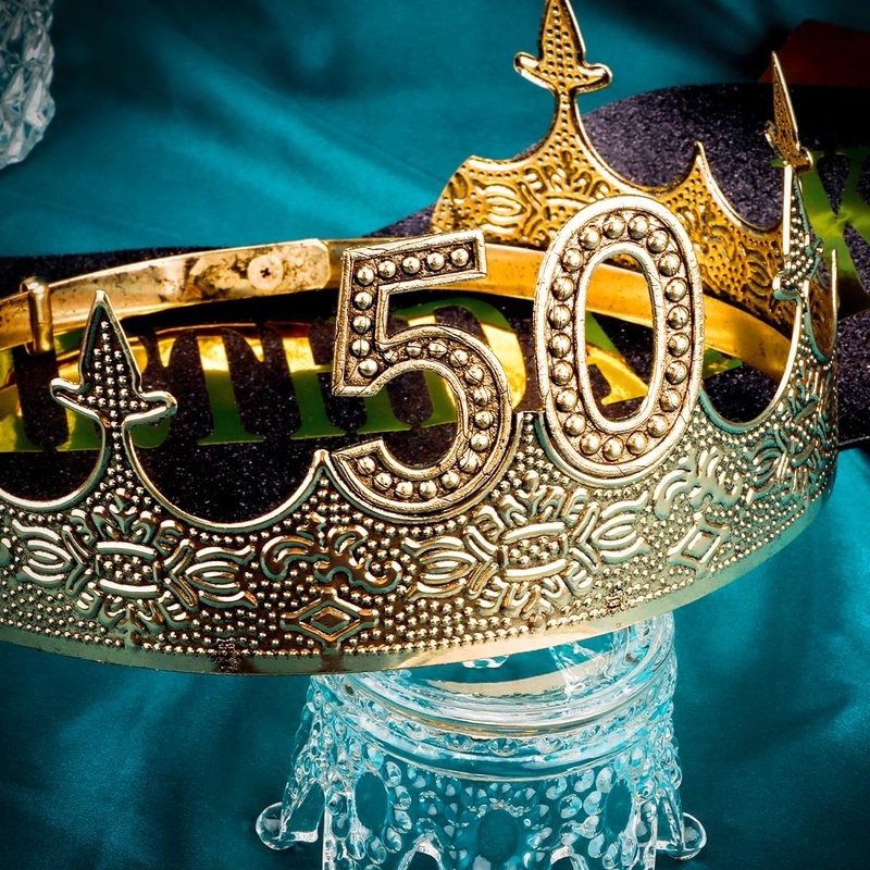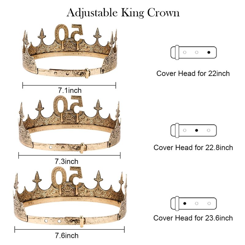 - 🎁50 Birthday King Crown: Made of iron and copper featuring retro design, dotted with carved time-honored patterns, which makes this royal crown greatly show its culture and authenticity.