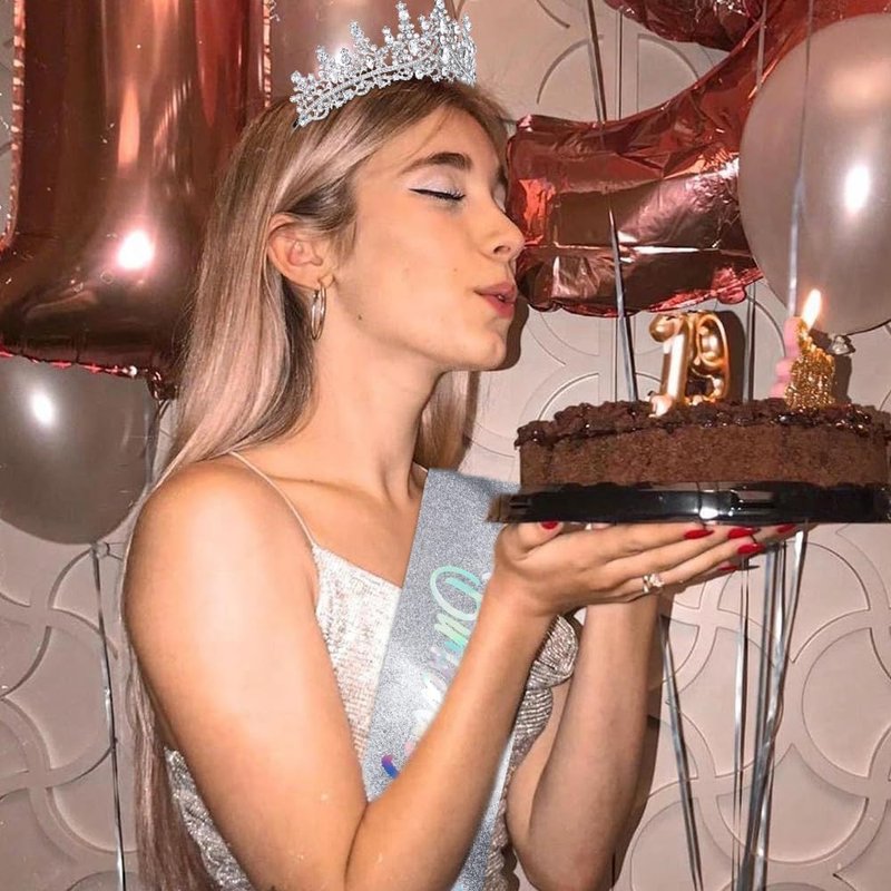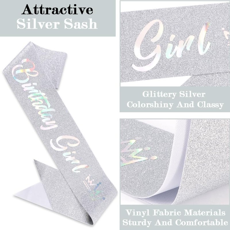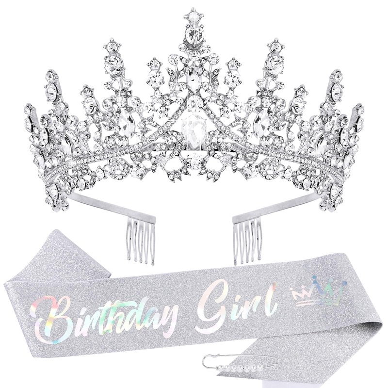 TOBATOBA Birthday Sash Birthday Crowns for Women Girls, Birthday Girl Sash and Tiara Set, Silver Birthday Crown and Sash for Women, Princess Birthday Decorations for Girls Birthday Gifts for Girls